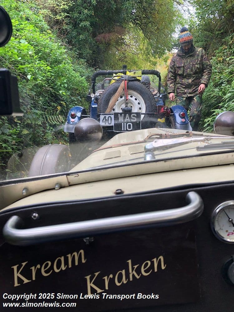 I briefly ran a Kawasaki powered 1100cc single-seater in speed events, and enjoyed it enormously, but the impracticality of running two competition cars in the same season (I was circuit racing my Rover 220 Turbo) meant it was moved on to pastures new. With it went my open-air motor sport. That was 1995. Fast forward several decades to 2025 and I found myself manouvering my 6 foot frame and size 11 feet into the rather tight confines of a Kraken trials car. This was at the start of the MECHANICS TRIAL on the banks of the Severn estuary. I wasn't driving however, that was the job of the car's builder Lee Peck. I was reading the route book and, theoretically, doing the ‘bouncing’ routine that we do in trials to aid traction . In fact I soon found considerable difficulty in that aspect of the job! The car is built round a smaller frame than mine and I couldn't get both feet to fit in side by side or find a suitable ledge to brace then against or bend my legs enough to get up out of the seat in any hurry. I could get in and I could get out, but in between those two states lay considerable ungainlyness and a degree of time passing! .