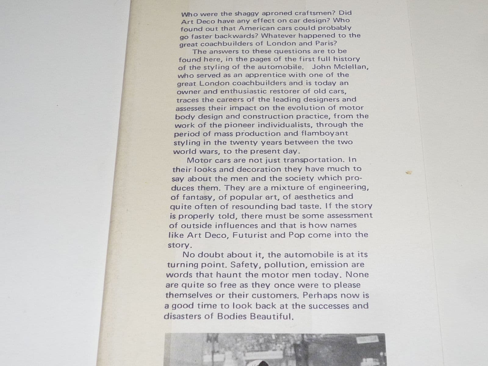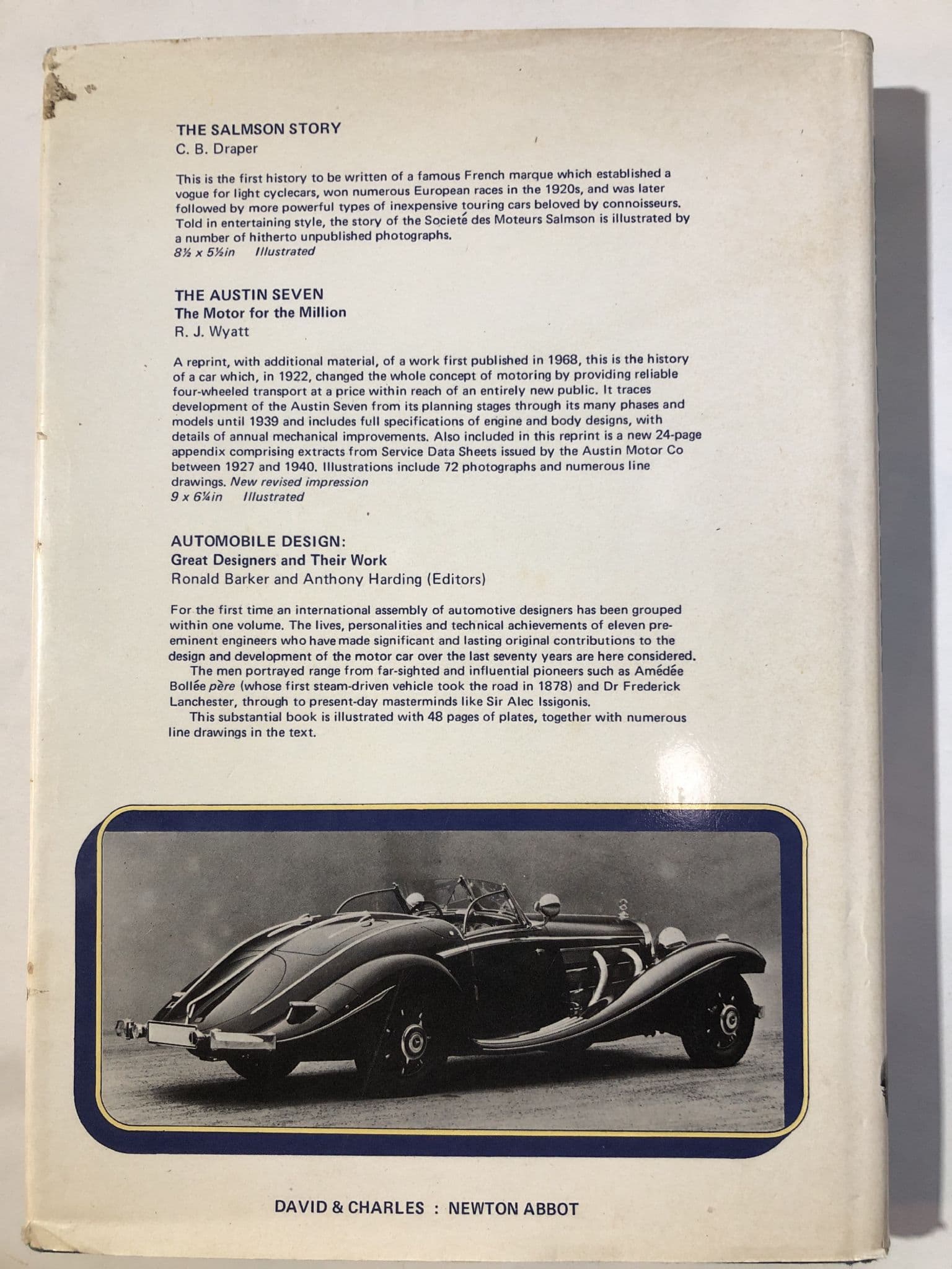 A History of Car Styling & Craftsmanship. From the days of the Coachbuilders Craft, before the advent of the Motor Car when Horse Drawn was the only practical Option, it took some time before the Motor Car lost its 'Horseless Carriage' nickname & Charactaristics to develop its own identity. But soon practicality gave way to custom built style as the Styling & Body Designers worked separately from the Motor & Chassis Manufacturers but complimented each other well with the finished product. Through the twenties & thirties, Art Deco put in an appearance on many of the Fine Cars from Europe & America, but alas it was all to change for good, with the wave of Mass Production & the off the peg, chassisless cars built completely as a single unit. Style is still here, but en mass, with little opportunity for individual taste, apart from by colour & wheel trim choice! The book runs to 192pp with an abundance of photos portraying the evolution from varying tastes & odd ideas to a long stream of Cloned Clones! The book is in very good condition the jacket likewise witha little minor wear