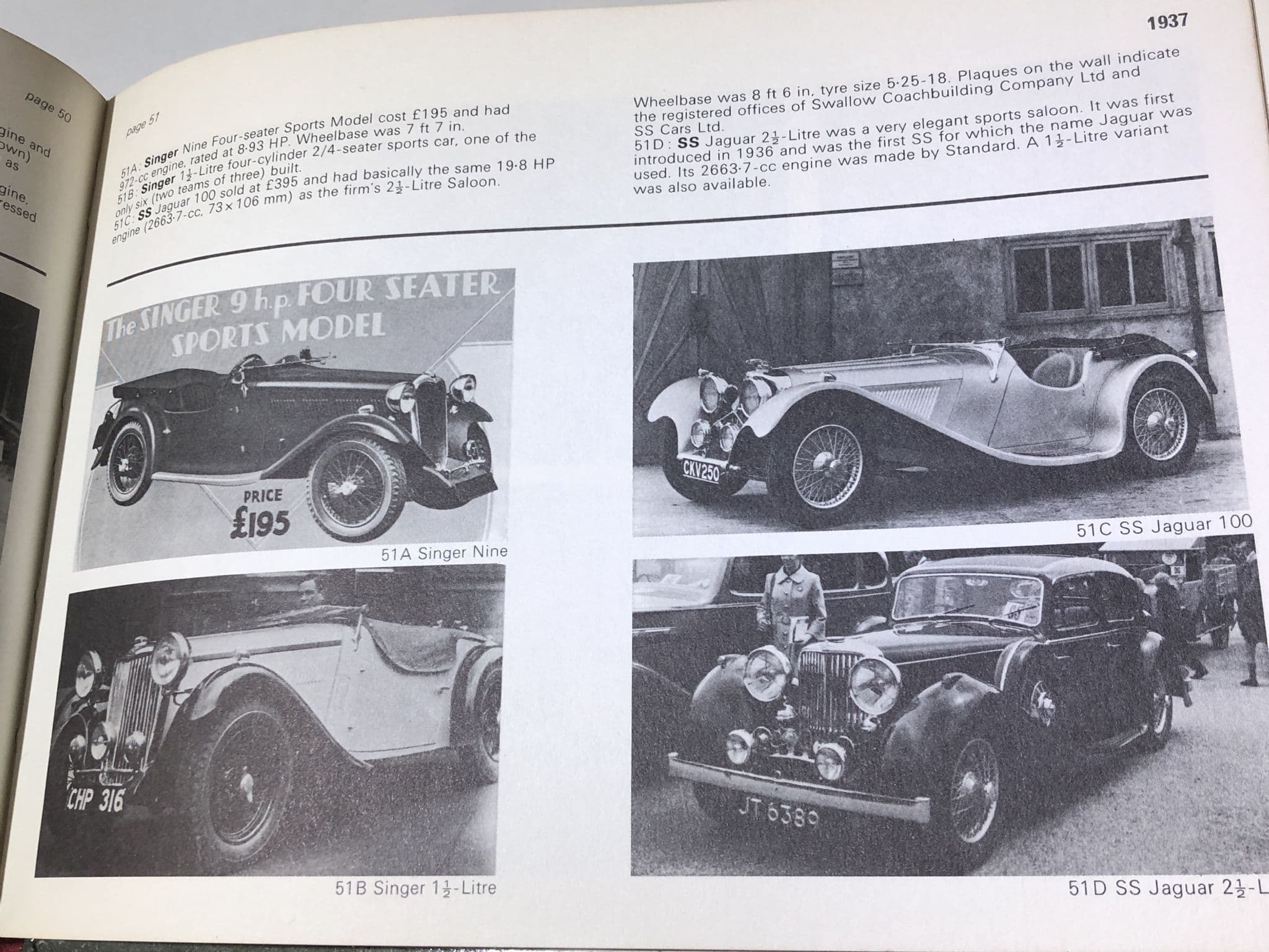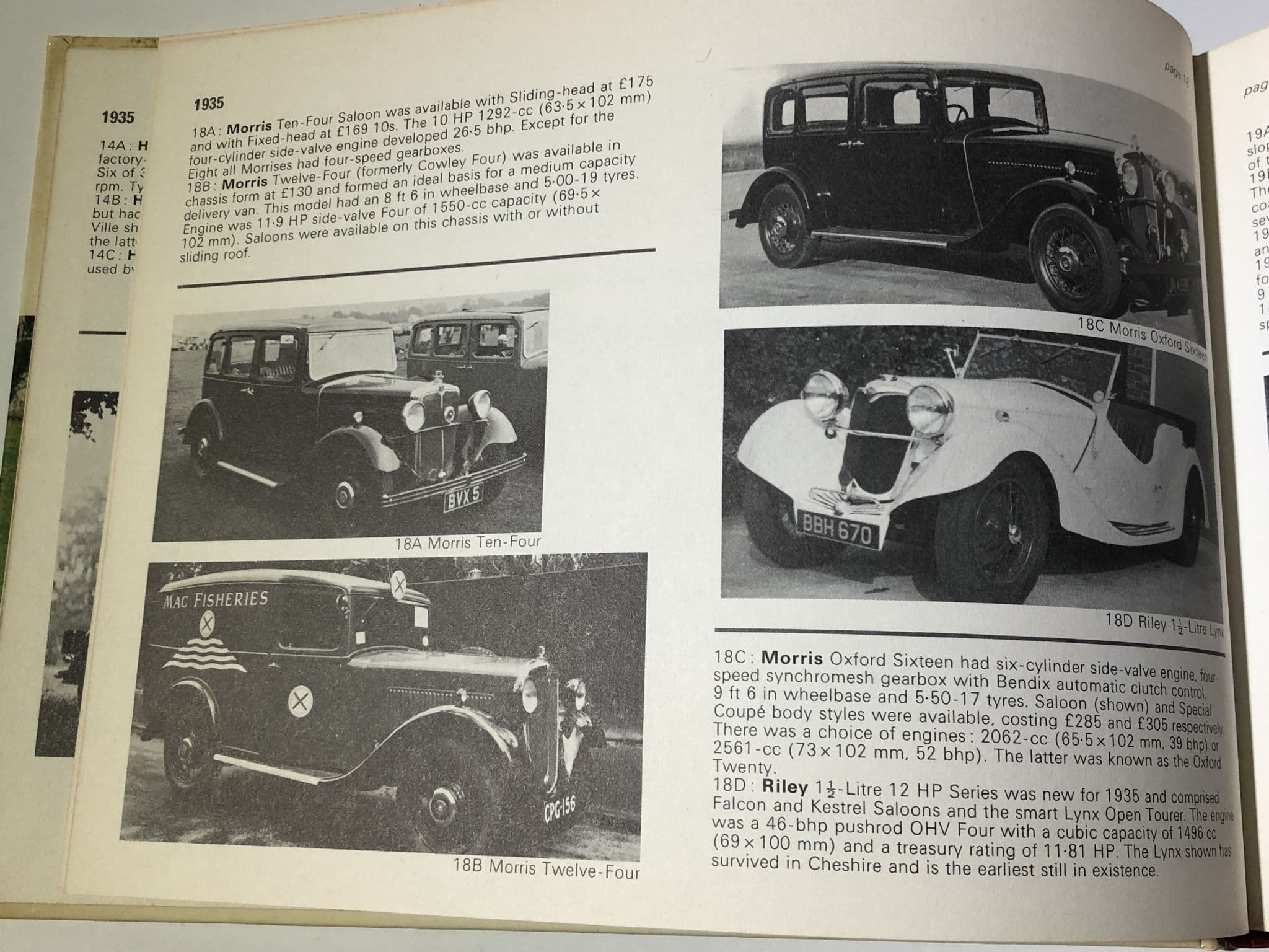 Year by year survey of makes and model made and marketed in Britain by the likes of AC, Austin, Aston Martin,  Morris, Ford, Vauxhall and so forth. APPROX 80 landscape format pages with masses of period mono illustrations . Part of an extensive series by Olyslager, published in this case by Warne. Some later editions were by Haynes I believe.