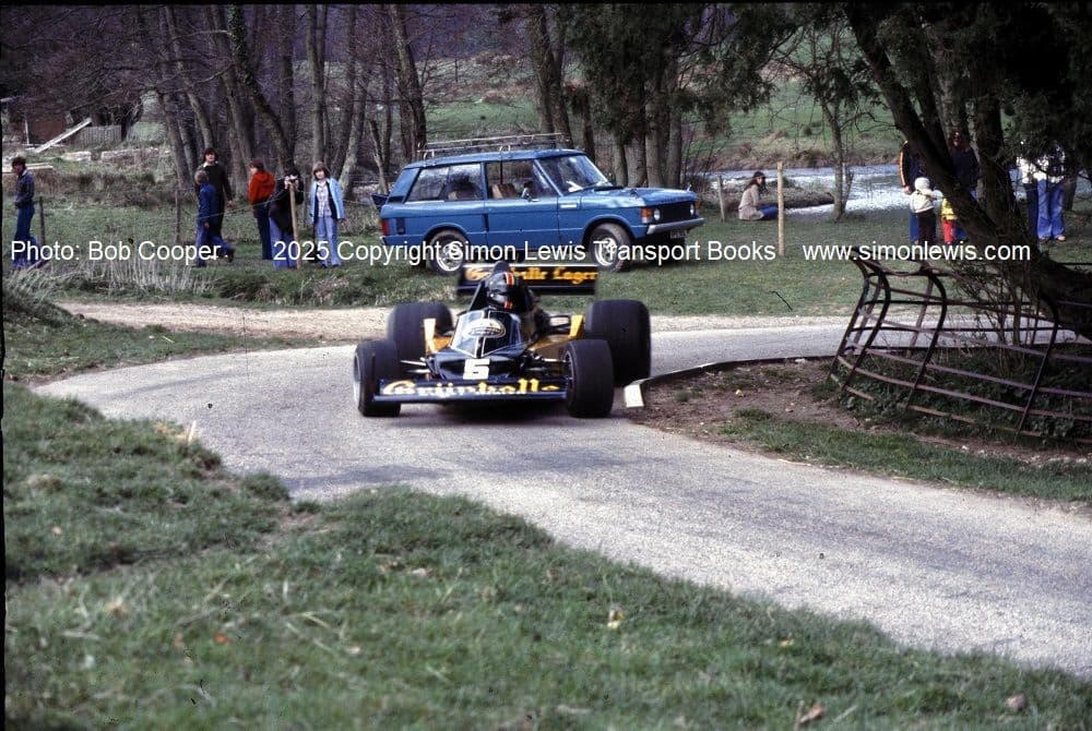 Future twice British Hillclimb champion Chris Cramer at Wiscombe hillclimb in 1978 with the Pilbeam-modified March 76A F5000 car, running a Ford Cosworth GAA V6 engine.