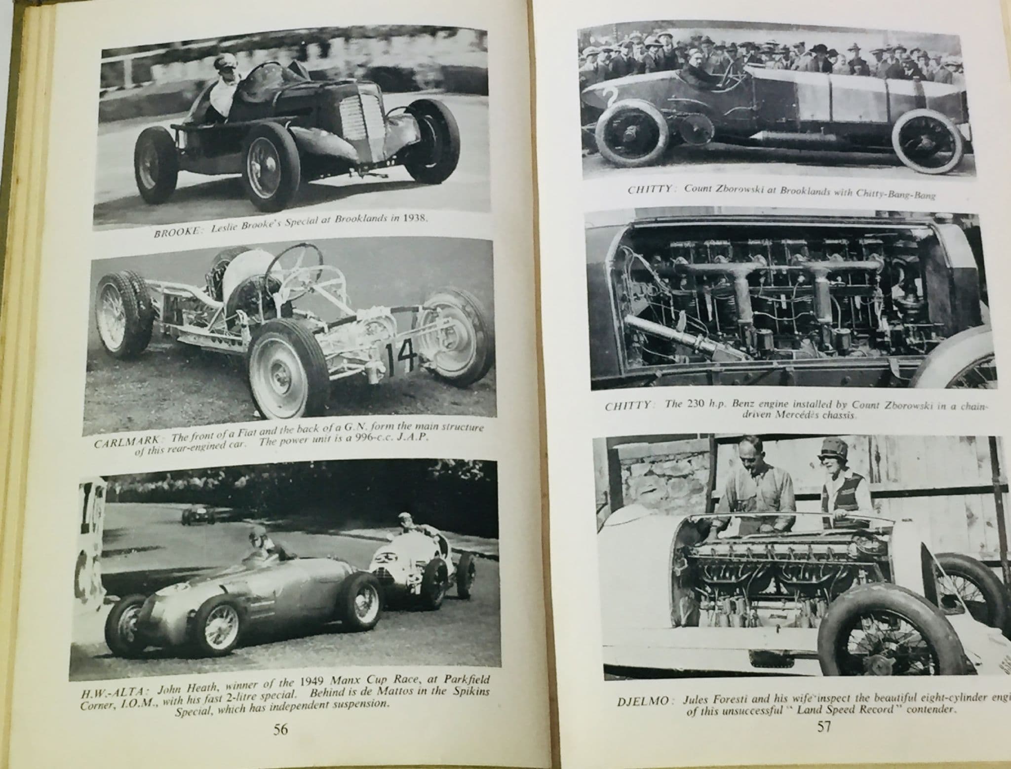 Famous racer, special builder, journalist and commentator John Bolster gives an A-Z guide to what English racing enthusiasts know as 'specials', home brewed one-off racing cars comprising various source material and often chains, motorcycle engines and little in the way of bodywork! The most famous was probably his own twin engines BLOODY MARY hillclimb car. The book includes land speed record cars such as BABS and BLUEBIRD. 175 Pages, lots of photos of devices called "Wasp" "Gnat" and "Salome" ... wonderful. Smart coidition book but no jacket.