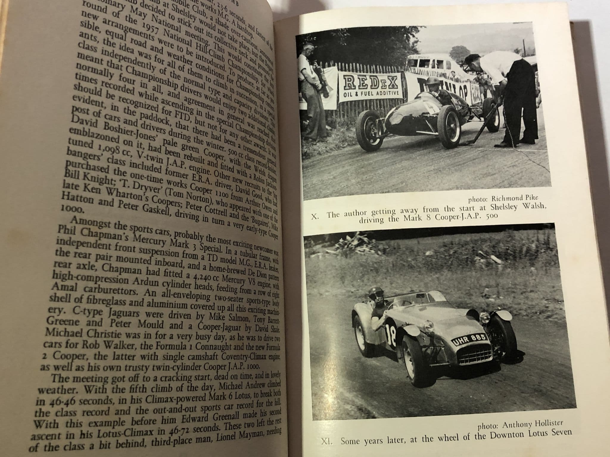 Rare book by famous motor sport author and long-time competitor, Austin May, charting the history of Hillclimbing in Britain from 1945 to the early 60s, an era when top names (Moss, Wharton, Collins, Salvadori etc) used to compete in events at venues like SHELSLEY WALSH, PRESCOTT, REST-AND-BE-THANKFULL and BOULEY BAY.