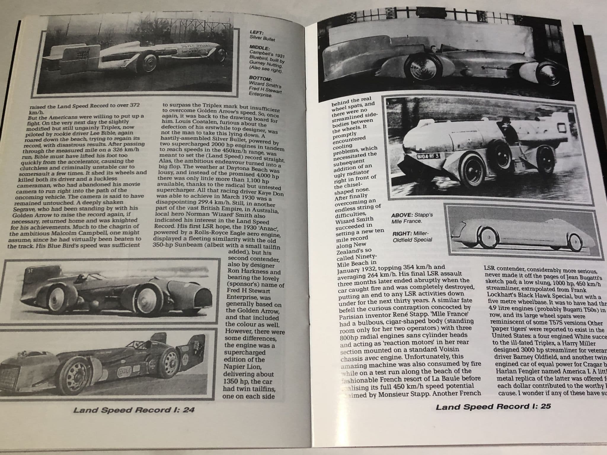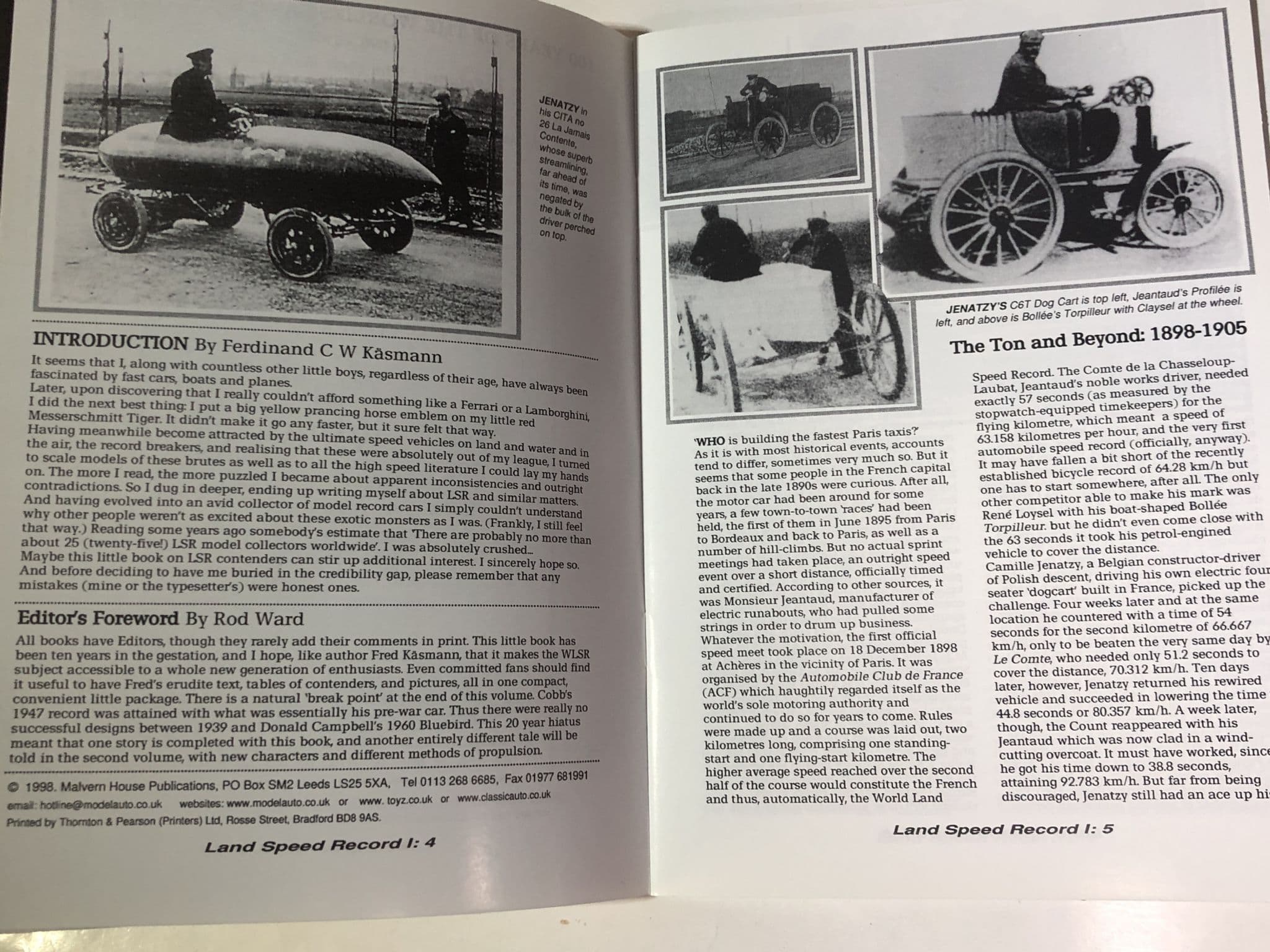 "The First Half Century" . A 33 page softback much in the SHIRE ALBUM style charting the story of speed on wheels the erliest days of the motor car to John Cobb topping 400mph in 1947 , by way of BABS, Bluebird, Barney Oldfield, Cobb, Campbell etc. Compact with the interesting and unusual photos. Very good clean smart example.