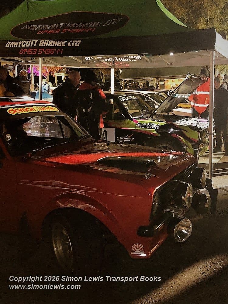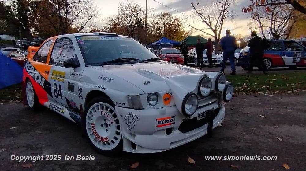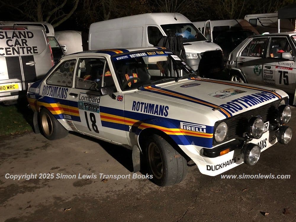 There was an ex Sainz Escort Cosworth in REPSOL colours, a wonderful MkII Escort |RS1800 in Vatanen/ROTHMANS livery, a replica Toivonen RAC winning Lotus Sunbeam, what might be a real ex Brooks ANDREWS version, and a host of other tasty machinery.