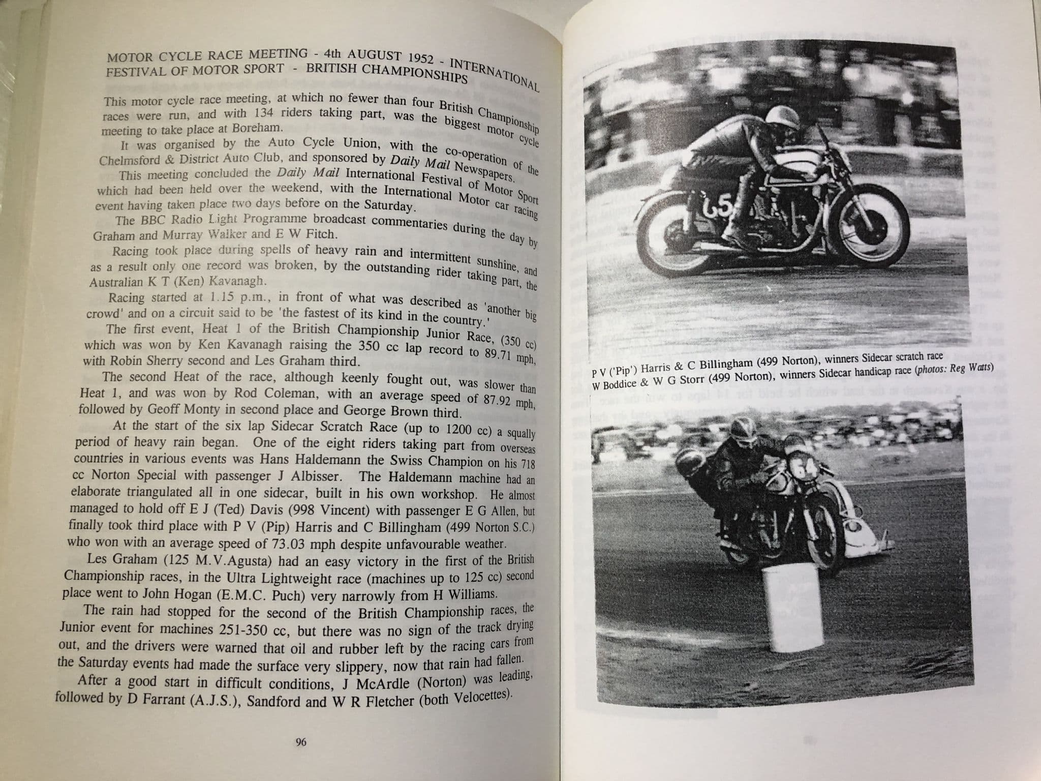 Softback history of car and motorcycle racing on the former RAF airfield at Boreham in Essex in the early 50s, a venue that ran some major events for both cars and motorcycles with the likes of Mike Hawrthorn, Luigi Villoresi and Les Graham and Maurice Can taking part. Later the site was used at Ford's base for it's work's motor sport teams, most famously it's rally efforts in the days of Mk2 Escorts and RS200s. 133 pages. Very good clean example.