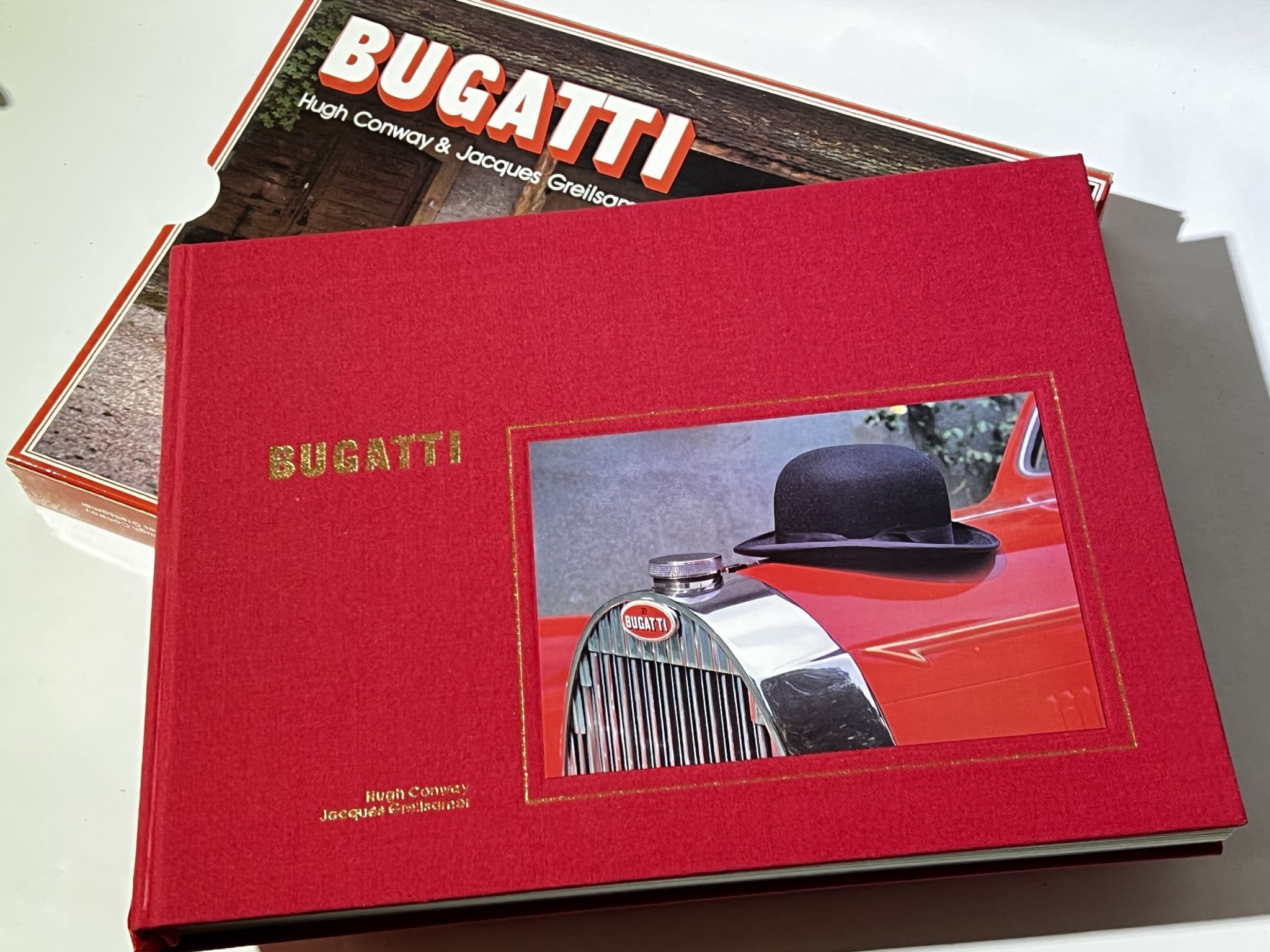 Lavish model-by-model history of Bugatti cars with period mono and contemporary colour photography of cars then-and-now , reproduced brochure pages, adverts and so forth, and the expertise of the marque's most famous student Hugh Conway to write the text - which is actually in French. 304 landscape pages, slip cased. Beautiful book in fine condition. Rather heavy...