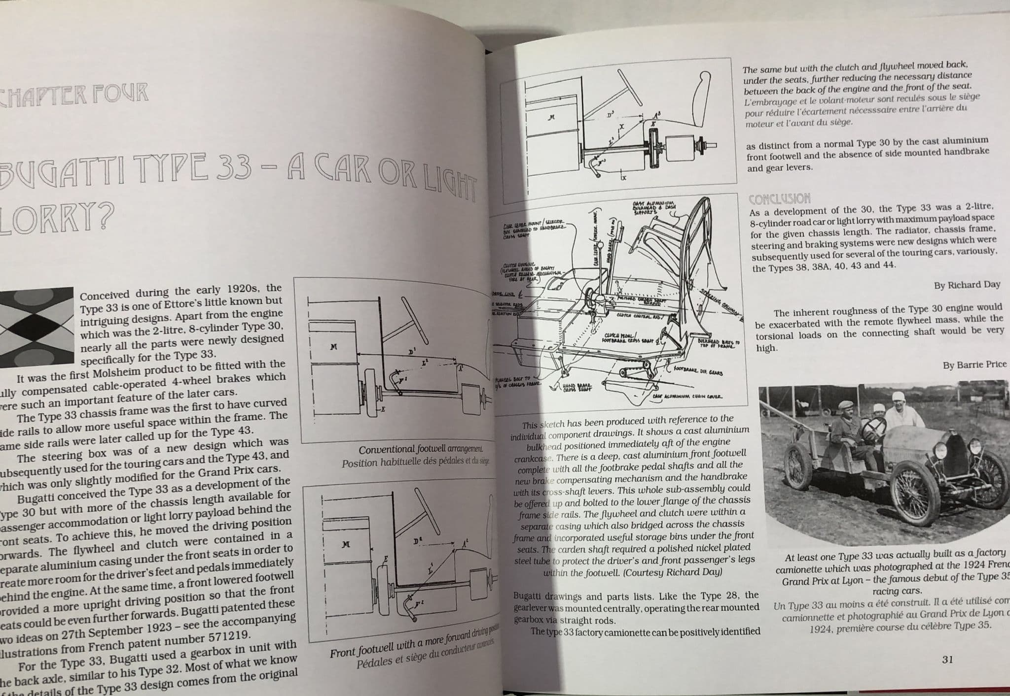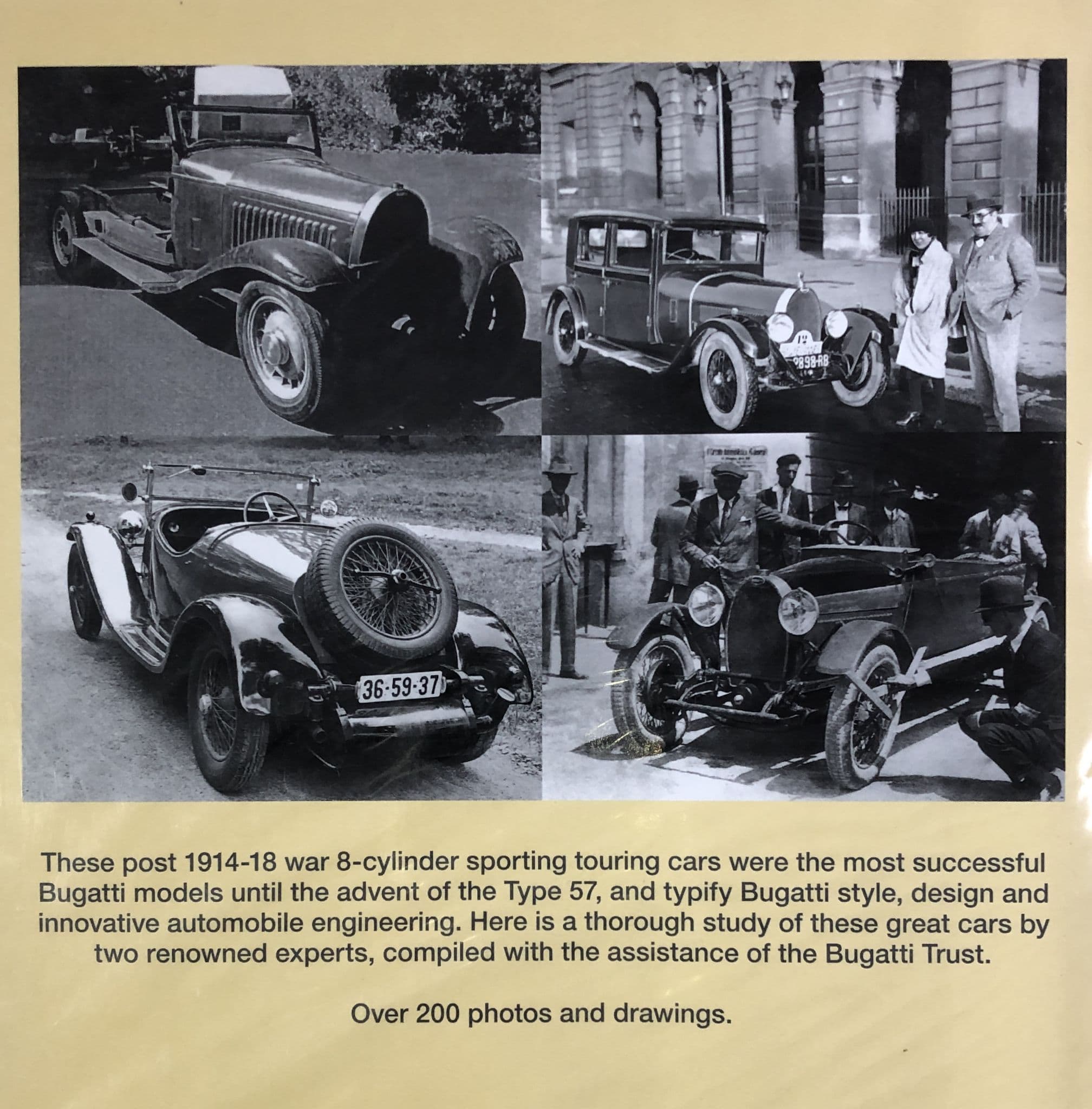 Highly rated study of the more compact road-going Bugattis, the type one would have as a sporting saloon on the Riviera in the late 20s and early 30s. Gorgeously designed cars with a exotic  straight 8 overhead cam engine, typically elegant chassis and  coach built bodies, to the customers own specifications .  Masses of photos illustrating the dizzying variations of bodies and style that were applied . 159 large pages, very good clean book, jacket likewise