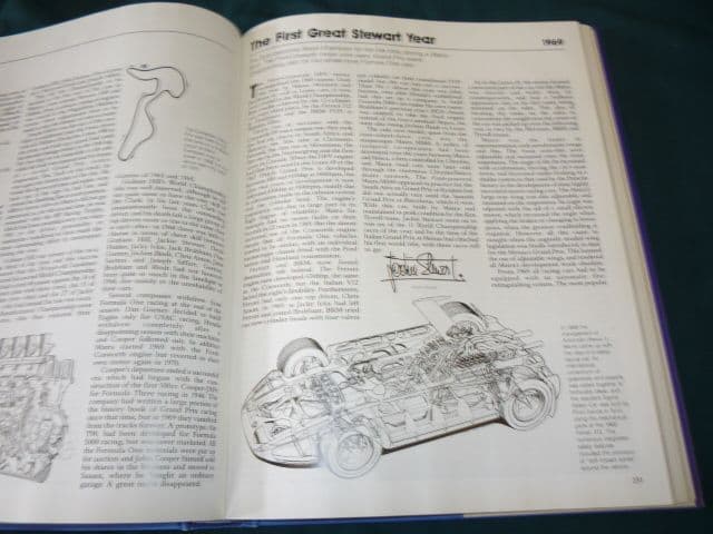 432 large pages.Extensive history of the sport that's now Formula One with masses of photos, circuit maps, reproduced autographs and cutaway drawings. One of the best general histories of the subject . Good but well read book and no jacket
