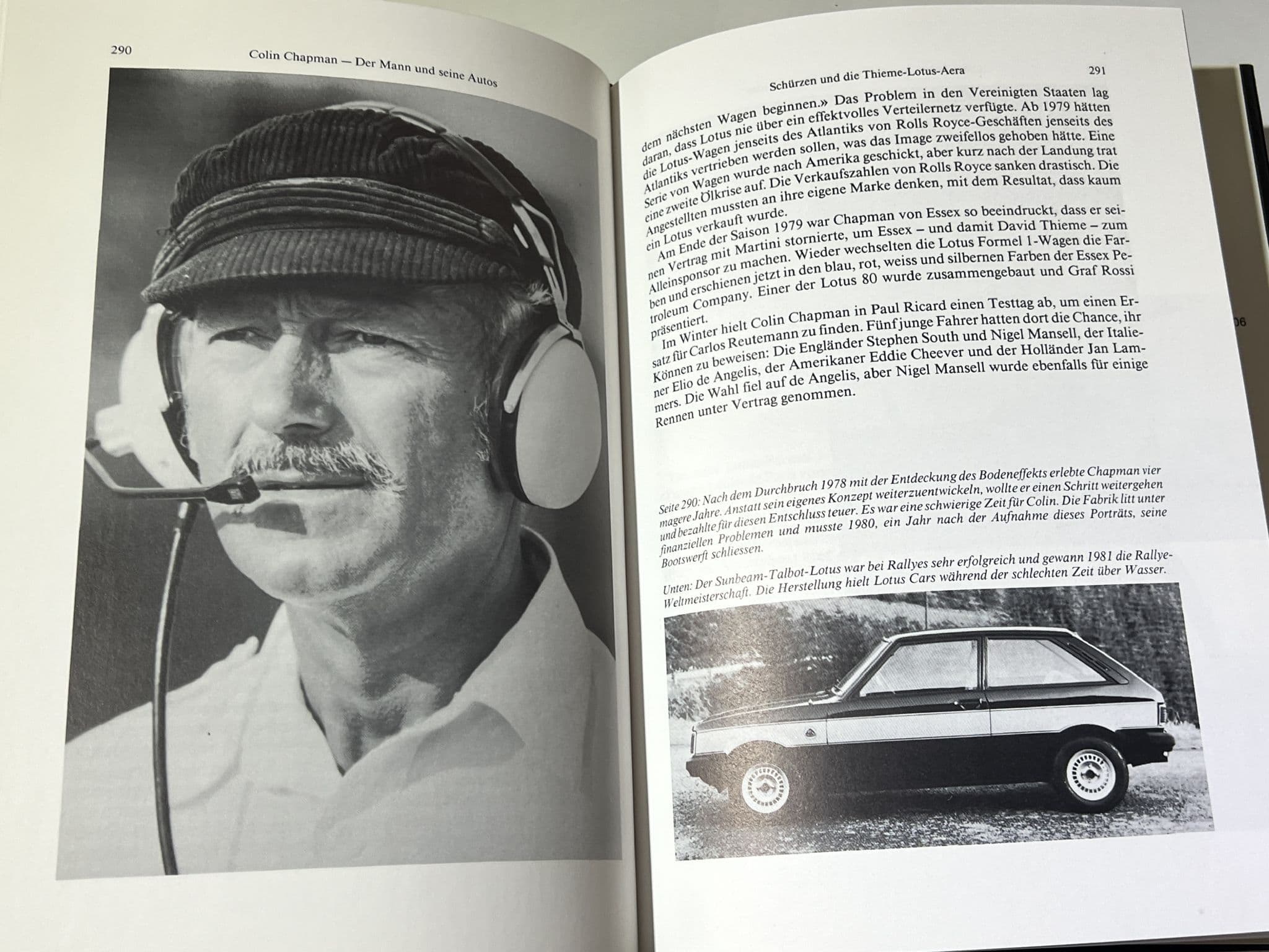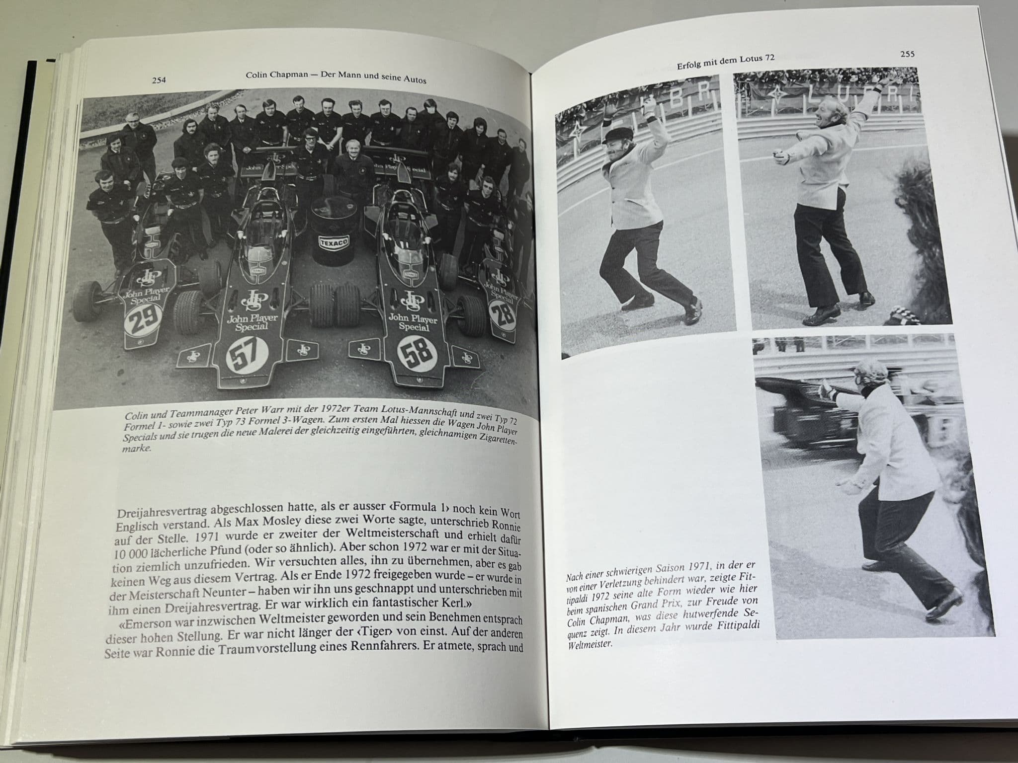 The German edition of Crombac's affectionate biography of the Lotus cars founder and racing car designer-genius Colin Chapman which goes from a secondhand Austin Seven Tourer bought in 1947 which he souped up for competition and called " Lotus " to F1 and Indycar success in the 60s and 70s .A controversial character who you loved or loathed. Crombac was a long term friend of the man and so this book is perhaps a little rose tinted on some aspects compared to the later biography by Mike Lawrence. 383 pages inc many photos. Book and jacket in very good condition,