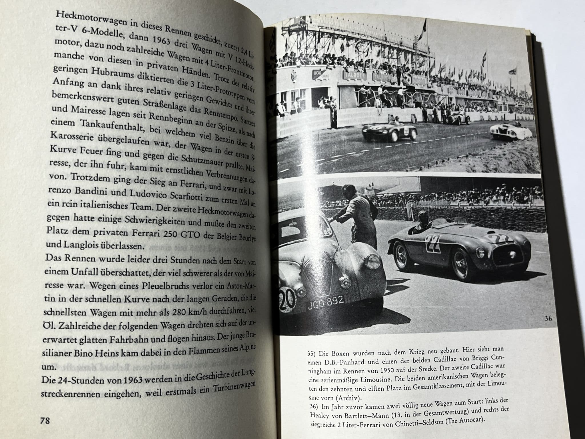 192 page hardback  history of the Le Mans 24 Hours sports car race, in German (I don't think this book was ever available translated to English)  Author Paul Frerte was the winner in 1960 in a Ferrari Testa Rossa. Here he charts the race from Bentley and Mercedes via Jaguar and Ferrari to Ferrari and Ford in the late 60s.