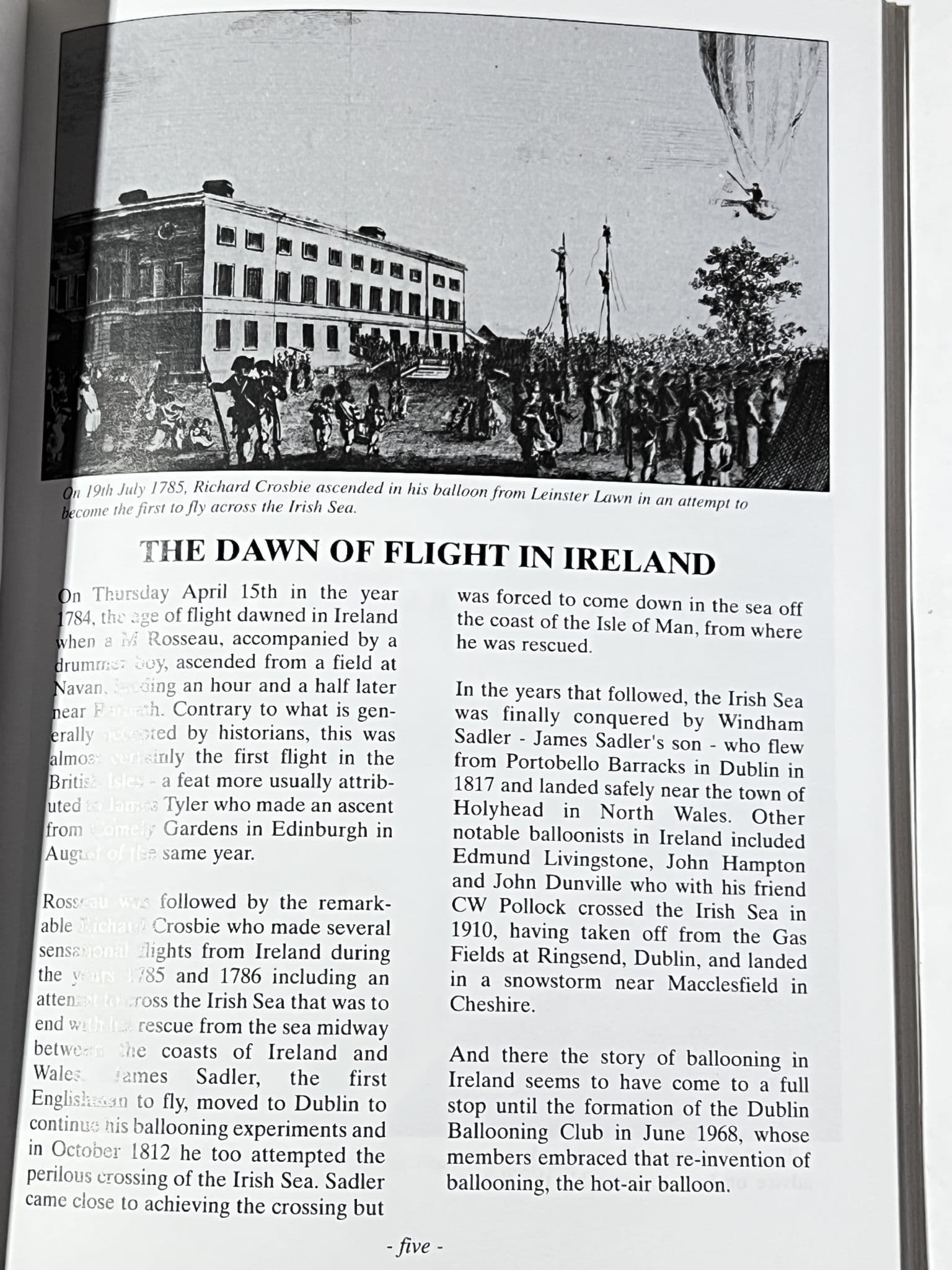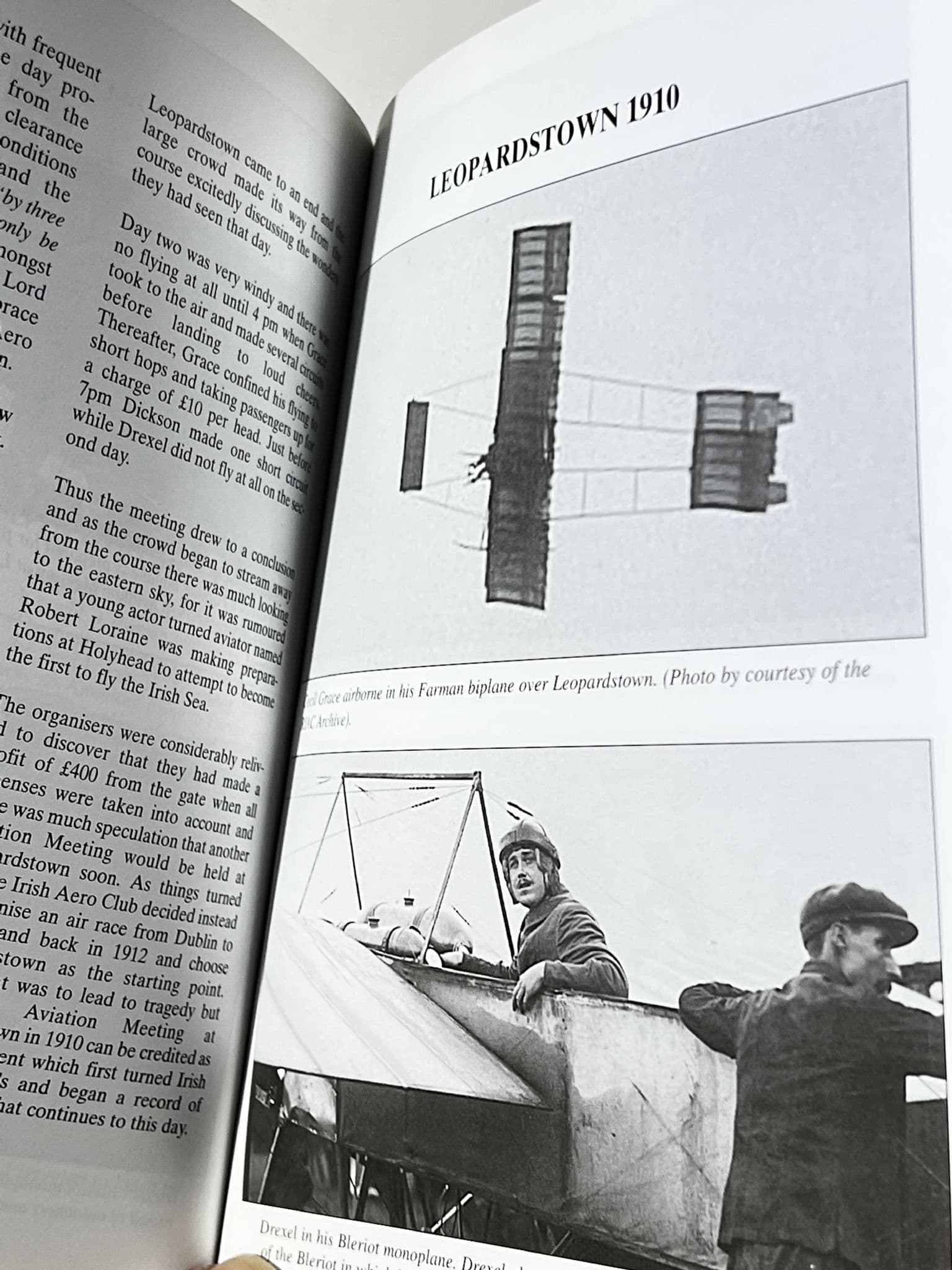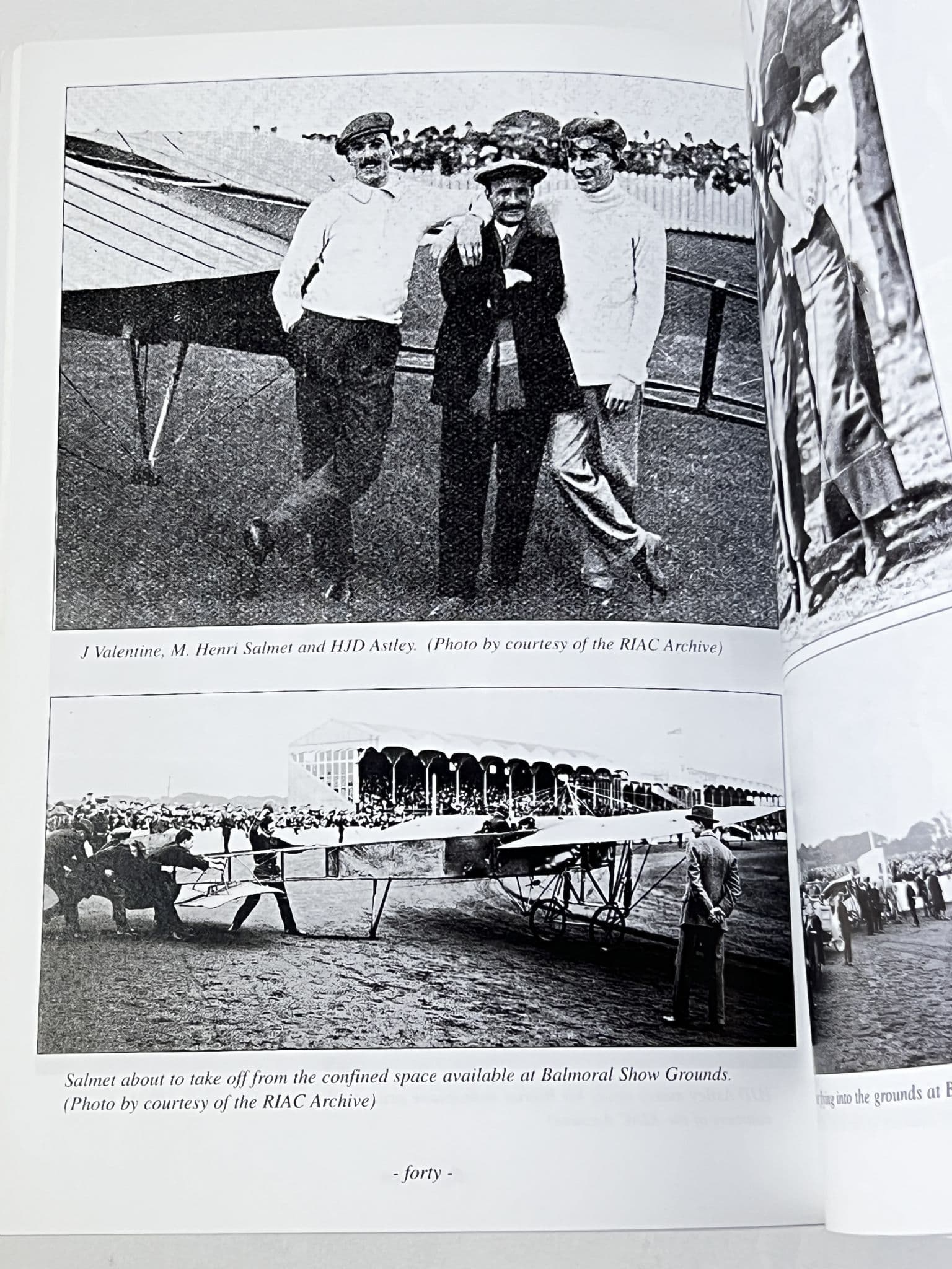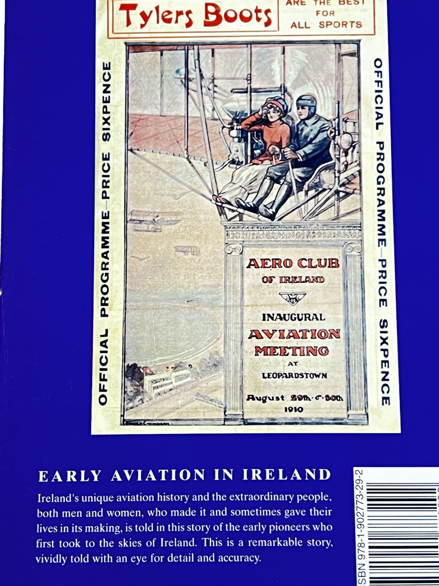 Slim 48 page softback o0n the very first flights in Ireland, names include Pref. Fitzgerald and his gliders,future  tractor magnate Harry Ferguson (first to make a powered flight) and lady aviator Lillian Bland who flew in 1910. Fascinating pioneering stuff . good condition but for the residue of a removed sticker on the front cover.