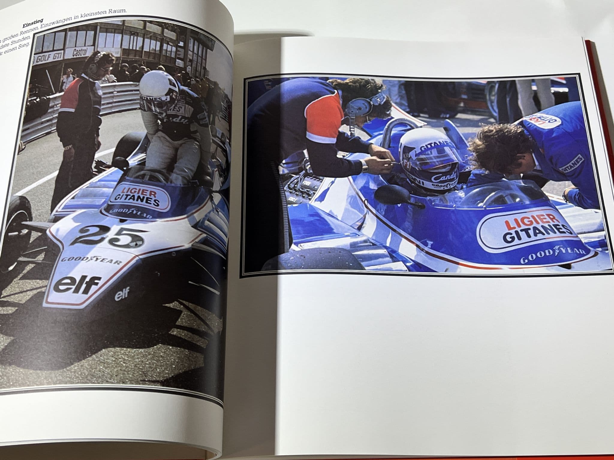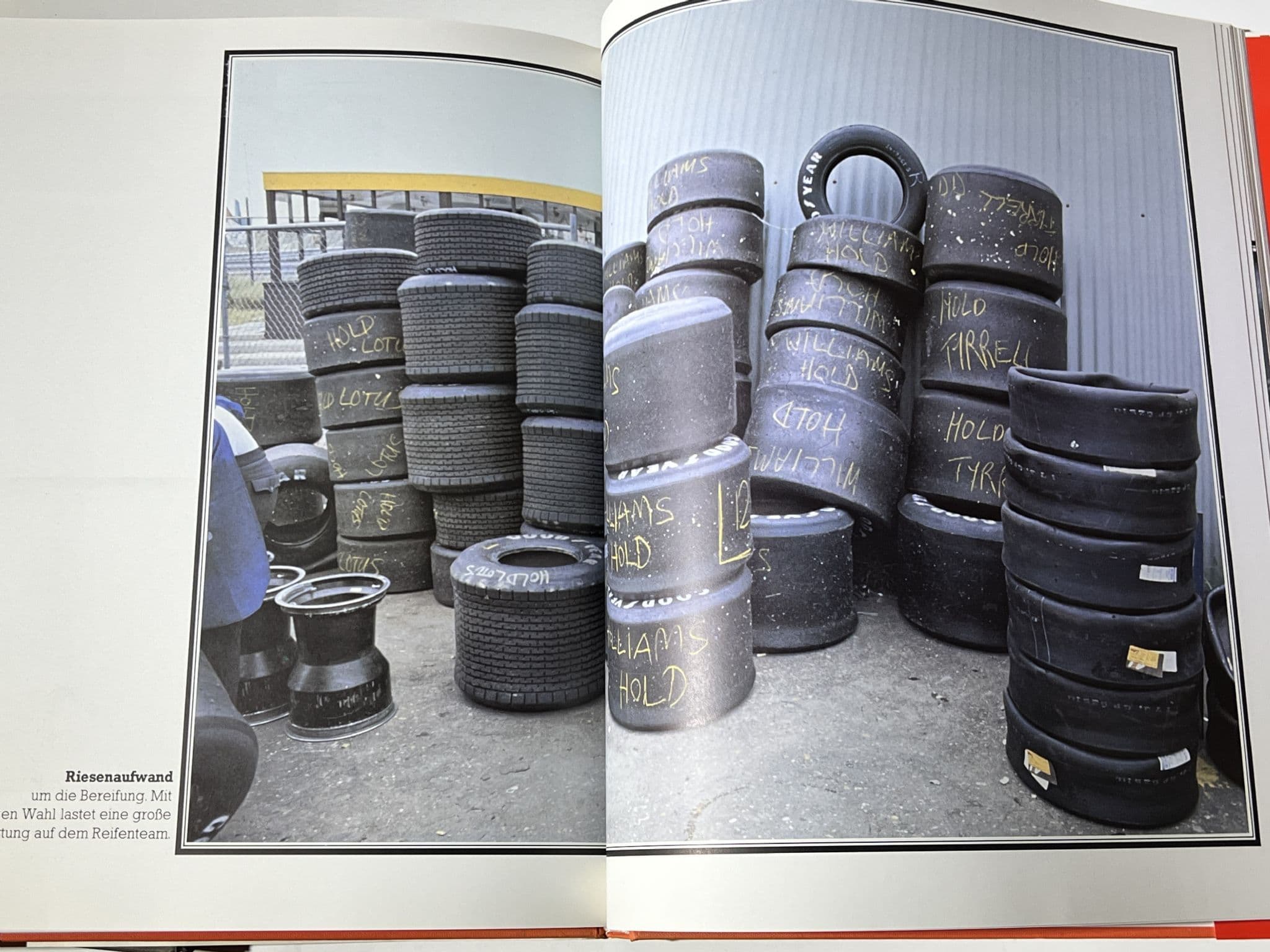 A photographic record of the 1980 Dutch F1 Grand Prix, produced in lavish style with approx 100 un-numbered, large 12"x12" (300x300mm) format pages of mostly un-captioned photos of Ligier, Ferrari, Williams, Arrows etc etc. in the pits, out on track, of the piles of tyres, transports in the paddock, the support races for R5 Renaults and BMW M1 Pro Cars. Strangely laid out with a lot of blank space. It's different...