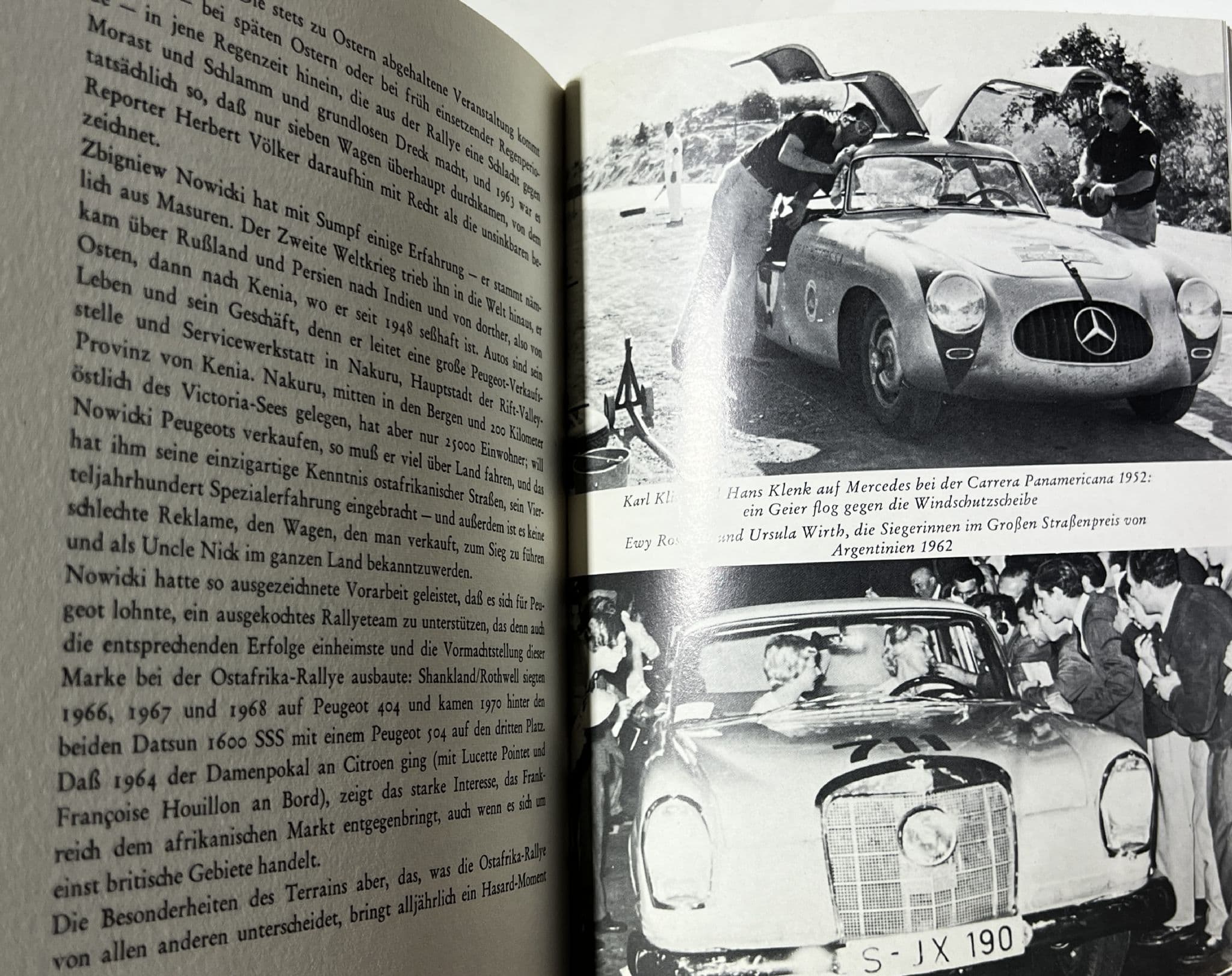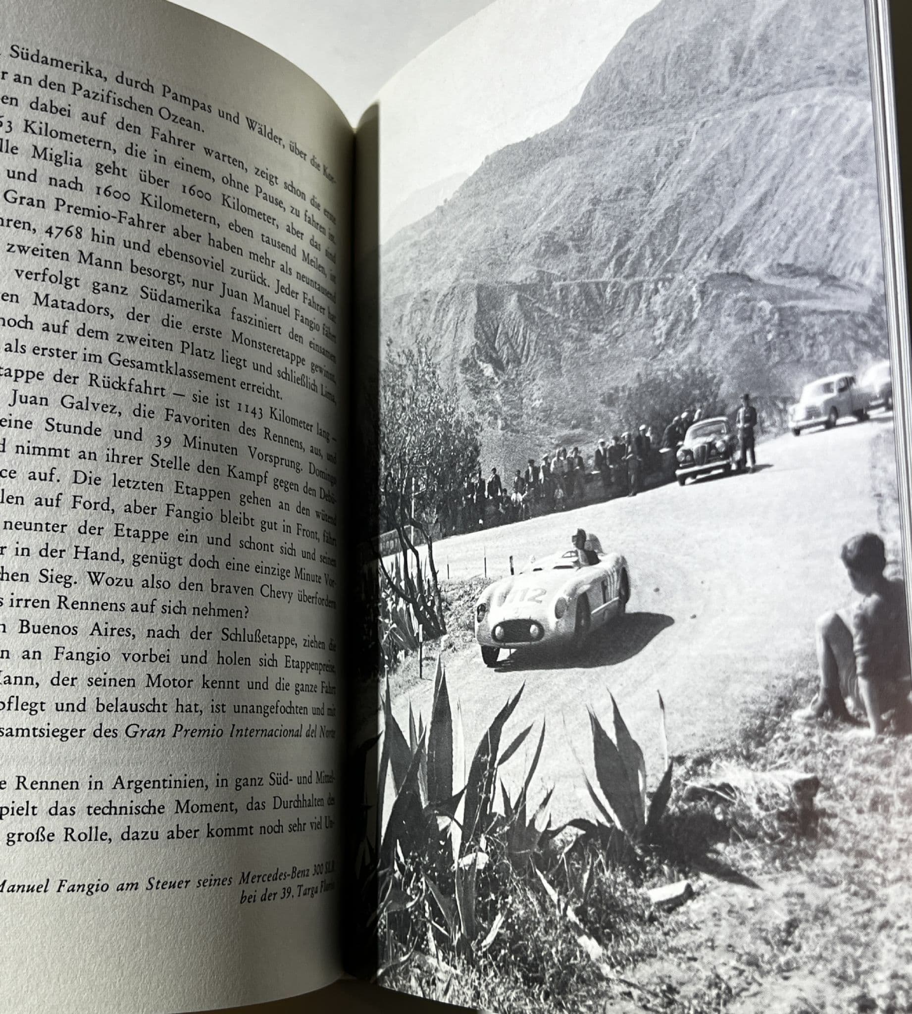 "ICE COLD ON HOT ROADS" is the translation of the title. A 1973 German book on road racing and rallying - as in racing on public roads in the fashion of the Mille Miglia, Targa Florio and Argentine GP events of the type that  Fangio mastered before reaching F1. Lots of good photos in many ways this mirrors the Chris Jones book ROAD RACE which was published around the same time. The subject matter is the same. 141 pages, very good book, no jacket.