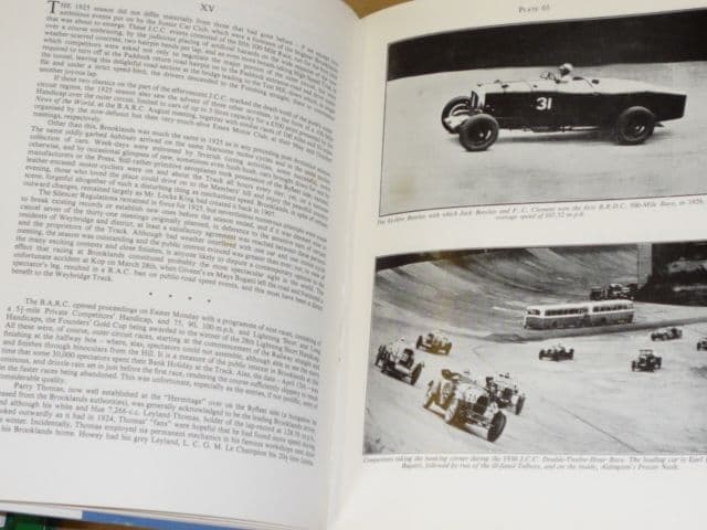 Originally published in three small volumes in the early '50's. This is the large single Volume which includes all additional or corrected information up to that time. Essential in every Motor Racing Enthusiasts Library is this, the Heritage & Tradition of British Motor Racing from its inception here in 1907 up to the outbreak of WW2. This mammoth book of 362 mlarge format, small'ish print, covers every possible aspect of the circuit, the results, the records & the special breed of Cars, not to mention the Drivers! that made this place such an institution of Motor Sport excellance. A superb work for which we are all grateful to Bill Boddy for spending so much of his time in producing & updating it, as new information comes to light. The book is in good condition as is the normally rather vaulnerable jacket It looks good for it's age but has a small rip at the top of on the spine/front cover hinge and a few minor bits of waer along its edged