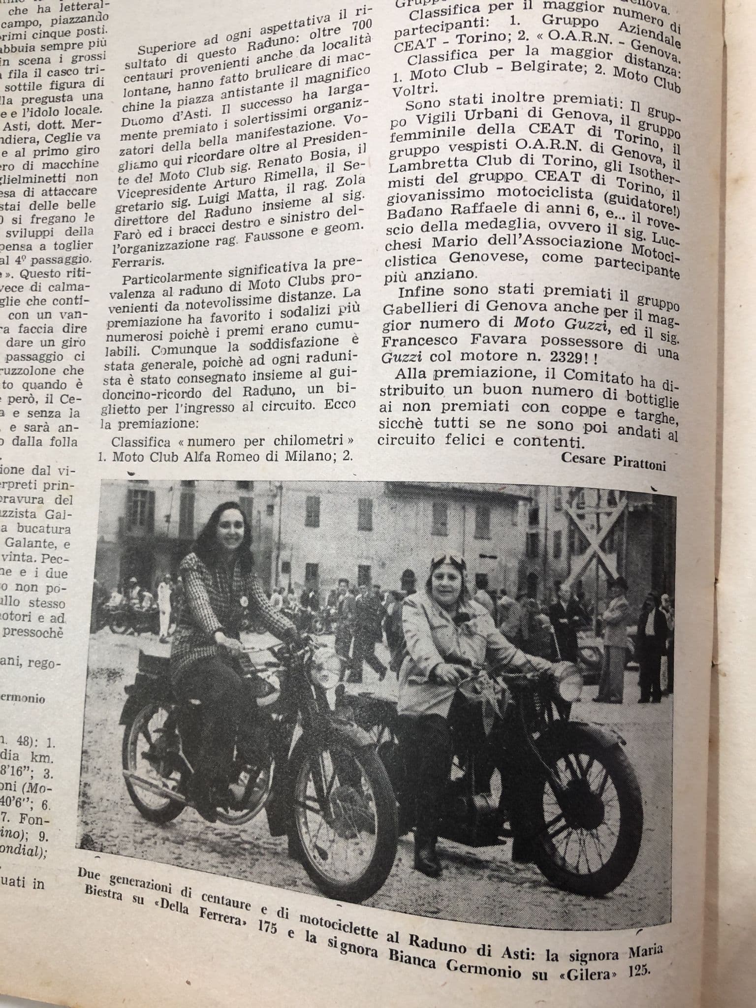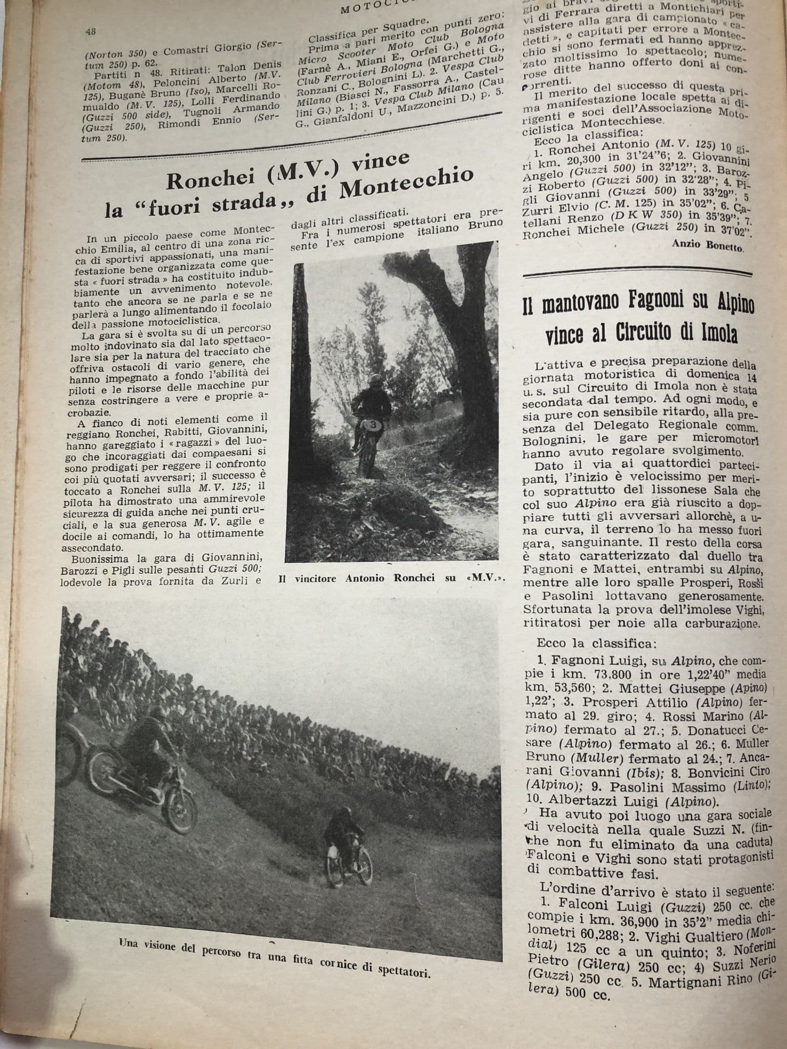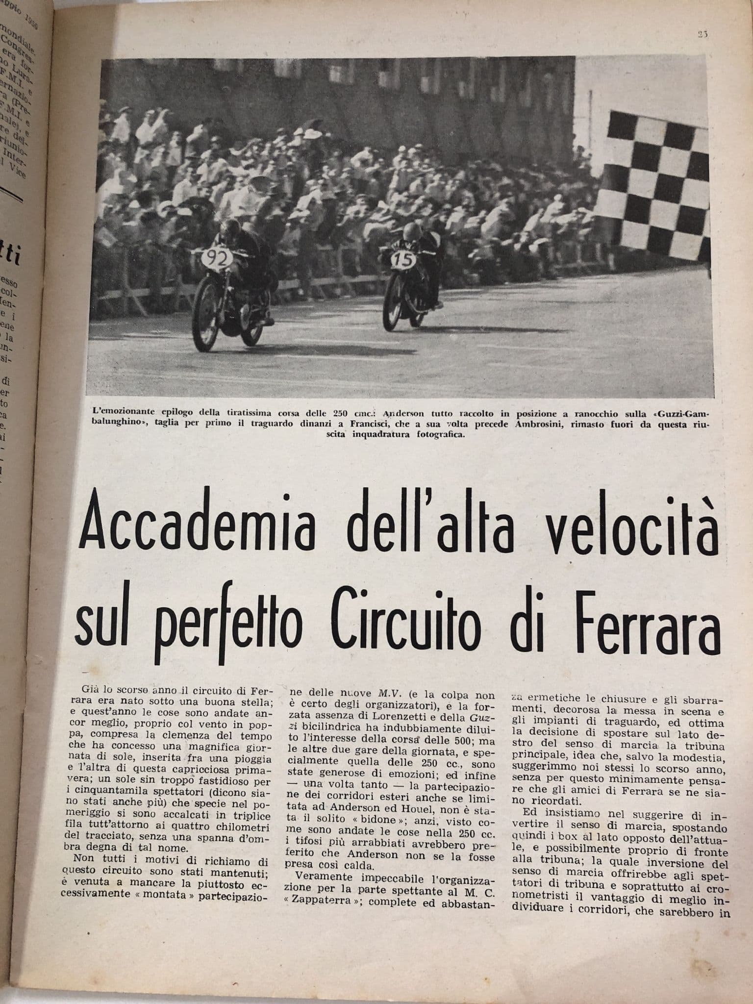Italian Motorcycle magazine from 1951 with many reports of races, trials and other events as well as fabulous period adverts for the likes of Moto Guzzi and Bianchi .