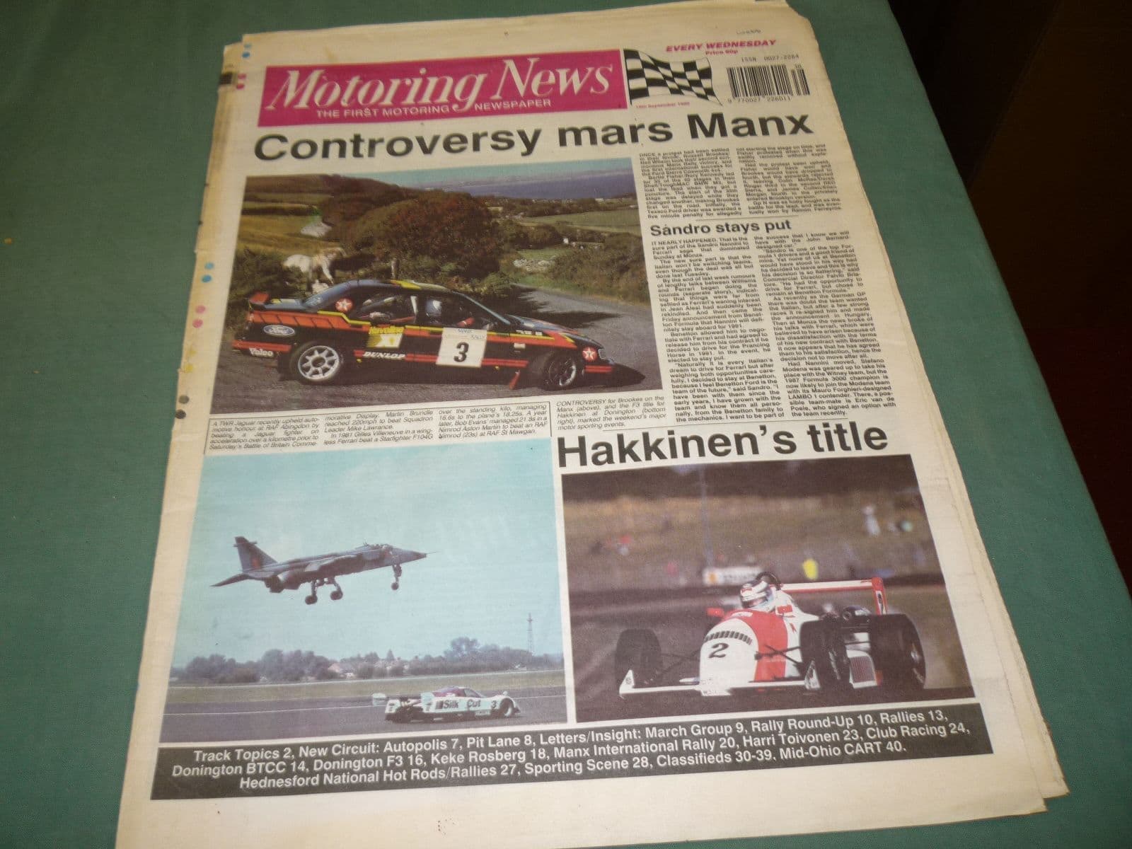MOTORING NEWS 1990 September 19 Manx Rally, Hakkinen wins F3 Title, CART,BTCC