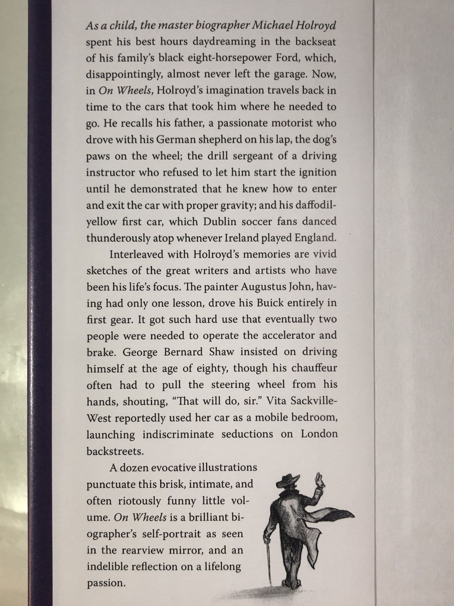 A musing on cars and car memories by the noted biographer who weaves his own car-history among the car related antics of famous names he encountered from the ages George Bernard Shaw who instsited on taking the wheel despite barely being strong enough to turn it, and 'society' sensation Vita Sackville West behaving  "indiscreetly" in the front seat of her motor in the middle of 1920s London.... Only 103 pages but very amusing. Fine condition book and jacket.