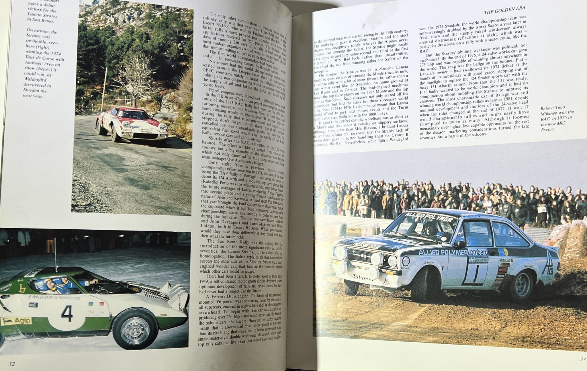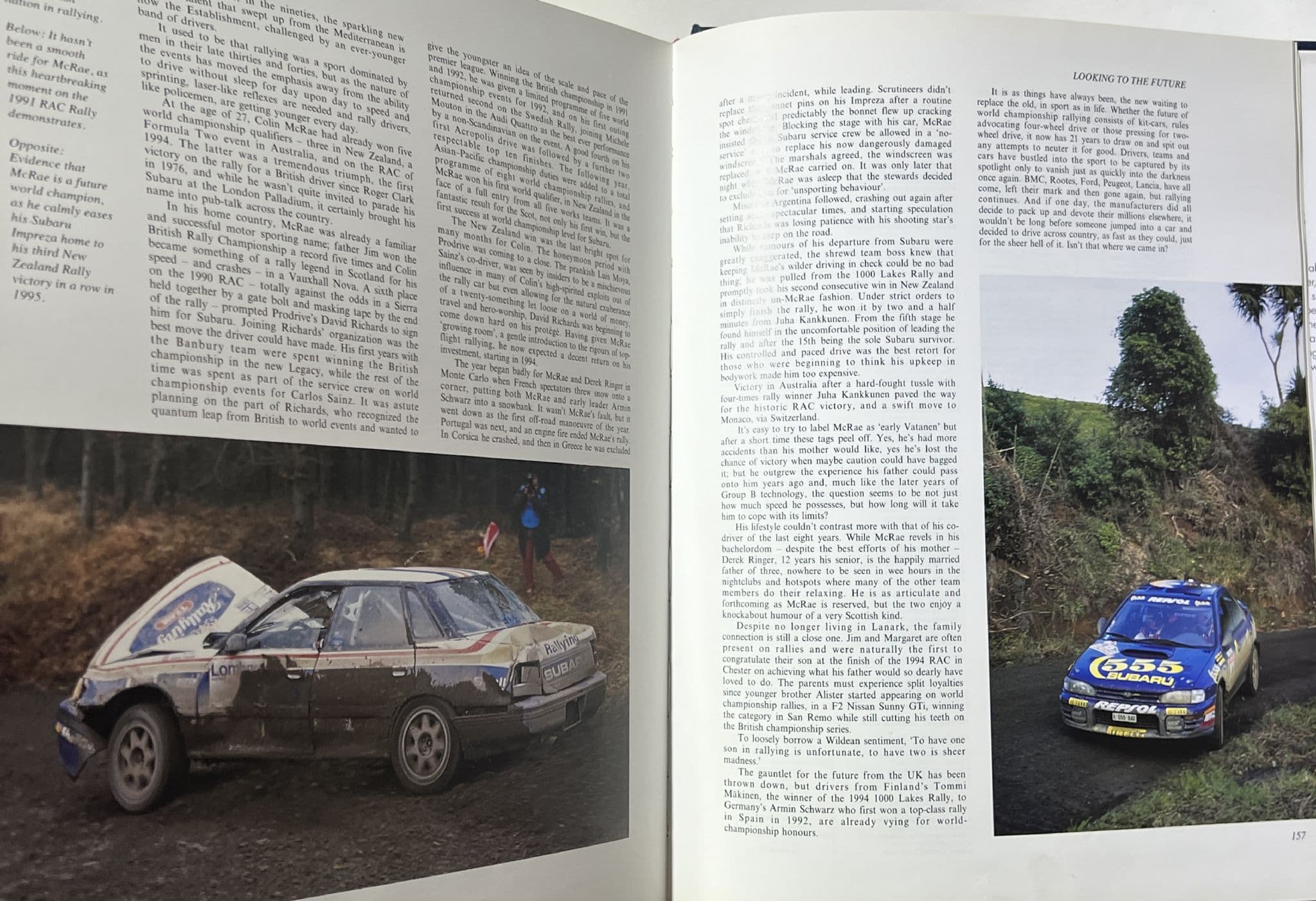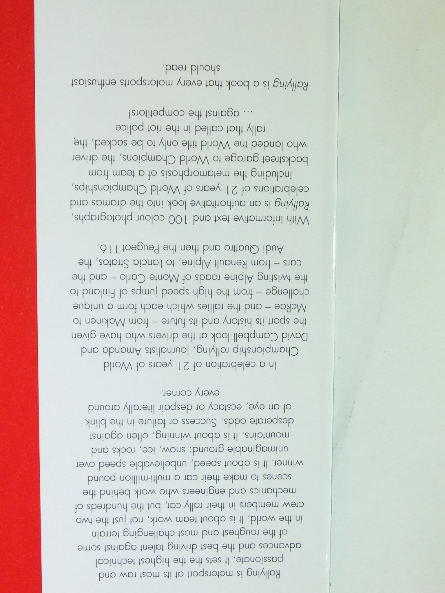 Nicely illustrated look back at the World Rally Championship from the era of  Lancia Stratos & Mk2 Escorts via Group B to the Subarus of McRae and Sainz in the mid 1990s. 168 pages ,Ex library book and jacket, usual stampings and removed labels, some inevitable wear and marking , Jacket good however.