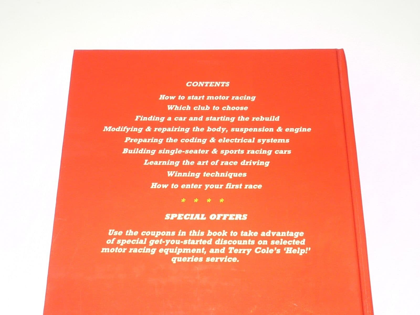 "Building A Competition Car On A Small Budget" 111 pages, printed cover boards, Flyleaf has been removed and there is a bit of an 'issue' with the glue on the last few pages which seems to have been badly applied in the binding process.