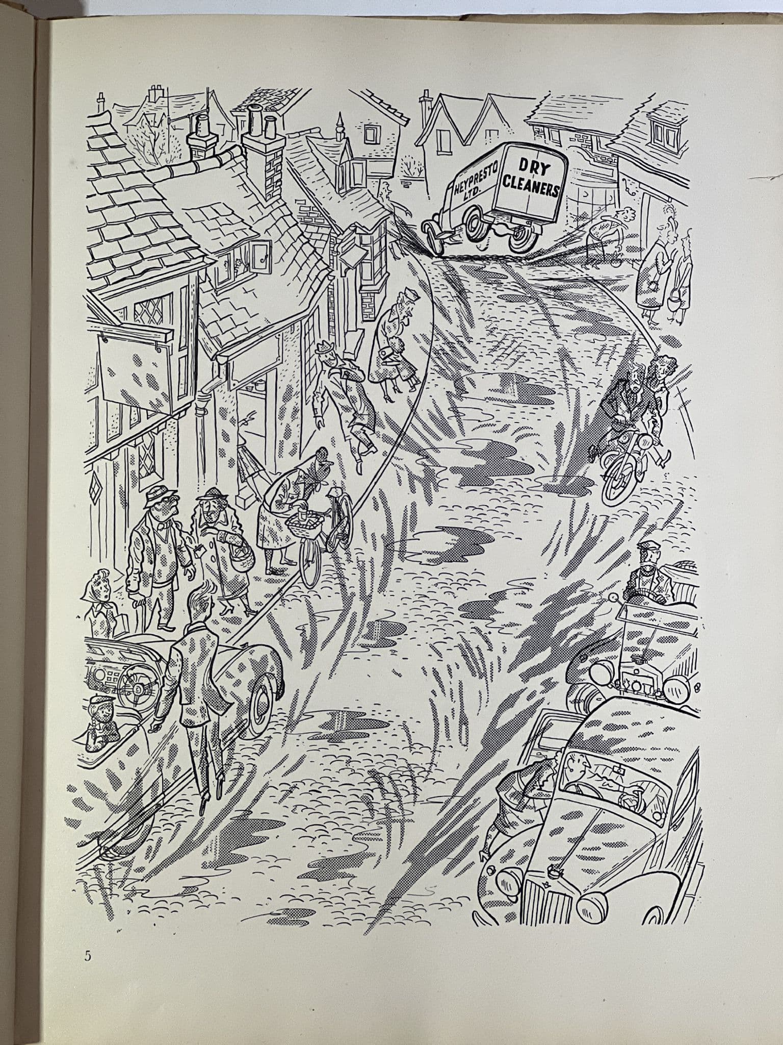 Book of brilliant motoring cartoons by the undoubted master of the art. One of several books by the great BROCKBANK who's eye for detail and comic touch are unrivaled. 55 pages.The book itself which has a jacket over  printed cover boards of the same design (why did they do that?) is in good condition aside from some foxing which appears rather randomly  throughout. The jacket is worn at the spine  and also foxed on the front.